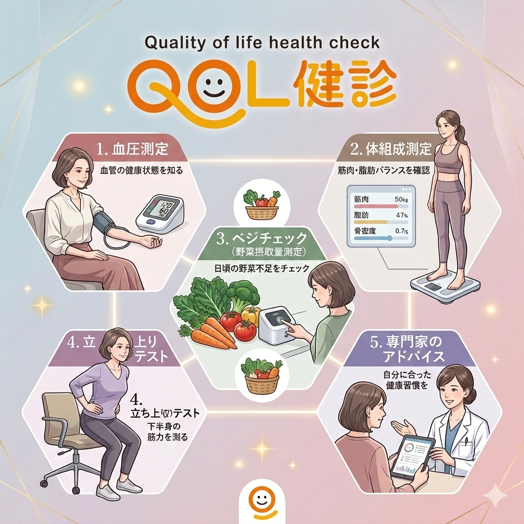 - 参加費:QOL健診のみ無料(当日参加OK)