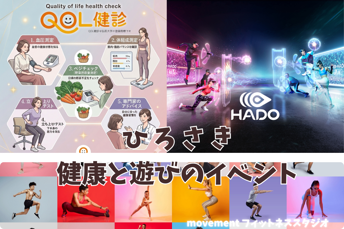 - 概要:健診受診→その場で結果がわかる→結果に基づいた個別解説。血圧・野菜摂取量・体組成・健康に関する問診・立ち上がりテスト。体力測定ブースを別で用意し筋力・柔軟性・バランスを評価させて頂きます。